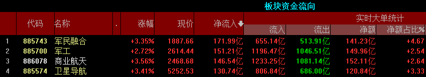 商业航天概念股再掀涨停潮,通宇通讯、邵阳液压、泰胜风能等30余股涨停;军工装备、军工电子、军工信息化等军工产业链全线爆发,中信重工、航天南湖等多股涨停。