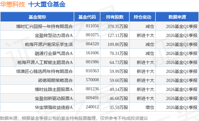 根据2026基金Q1季报公募基金重仓股数据,重仓该股的公募基金共28家,其中持有数量最多的公募基金为博时基金的博时汇兴回报一年持有期混合。博时汇兴回报一年持有期混合目前规模为28.85亿元,最新净值1.2142(4月23日),较上一交易日下跌0.56%,近一年上涨86.37%。该公募基金现任基金经理为吴渭。吴渭在任的基金产品包括:博时汇智回报灵活配置混合,管理时间为2017年4月12日至今,期间收益率为238.44%;博时汇荣回报混合A,管理时间为2021年8月24日至今,期间收益率为44.43%。